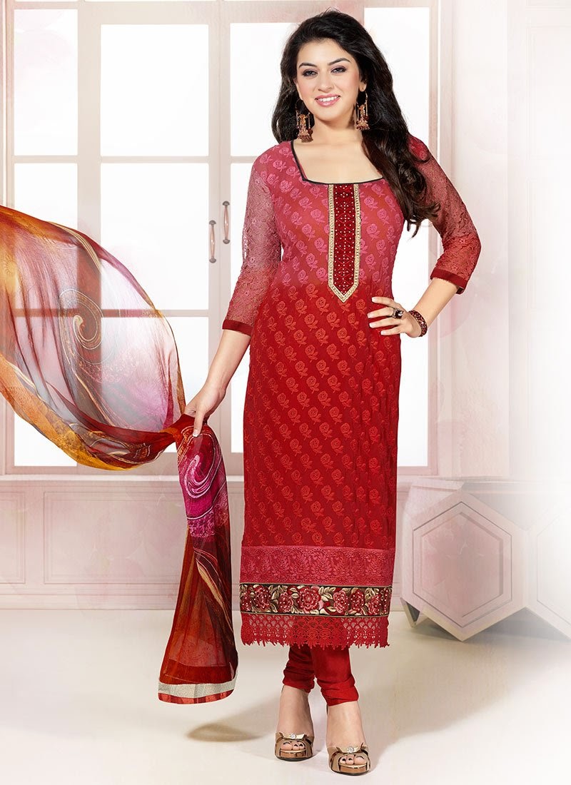 Hansika Motwani is probably one of the recognized names of the Bollywood film planet. She started off with her journey from the television. Now she has all made herself as being the part of film world as well. She made her debut from the film named as “Apka Suroor”. She worked alongside with Himesh Reshammiya. As being a model she has highlighted herself in many advertisements. She has done many shoots as well. If we talk about the decoration then it is surely superb. Embroidery has been done on all the frocks dresses designs. In addition many of them have been carried away with the lace versions too. Colors are being used in darker color blends. Each one of the dress is painted with the use of multi-color such as dark red, yellow, green, purple and so wide range of other colors too.