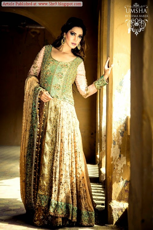 Reflections by Uzma Babar is all about the Pakistani Weddings, the collection is based on the five main ceremonies i.e from Mayoon till Valima which reflect the Big Fat Weddings of Pakistan. With high tech gleaming fabrics, peppered with glittery beads its not only made to sparkle the catwalk but to shine for a subtler radiance for the brides. Clean and modish cuts make for the silhouettes with glitterbugs, embroidery and fine knits. These bridal pieces have elegance and glamour to be the next look for the brides of subcontinent. This collection has magical qualities; sumptuous outfits with vibrant colors float about the body like a mystical glow.